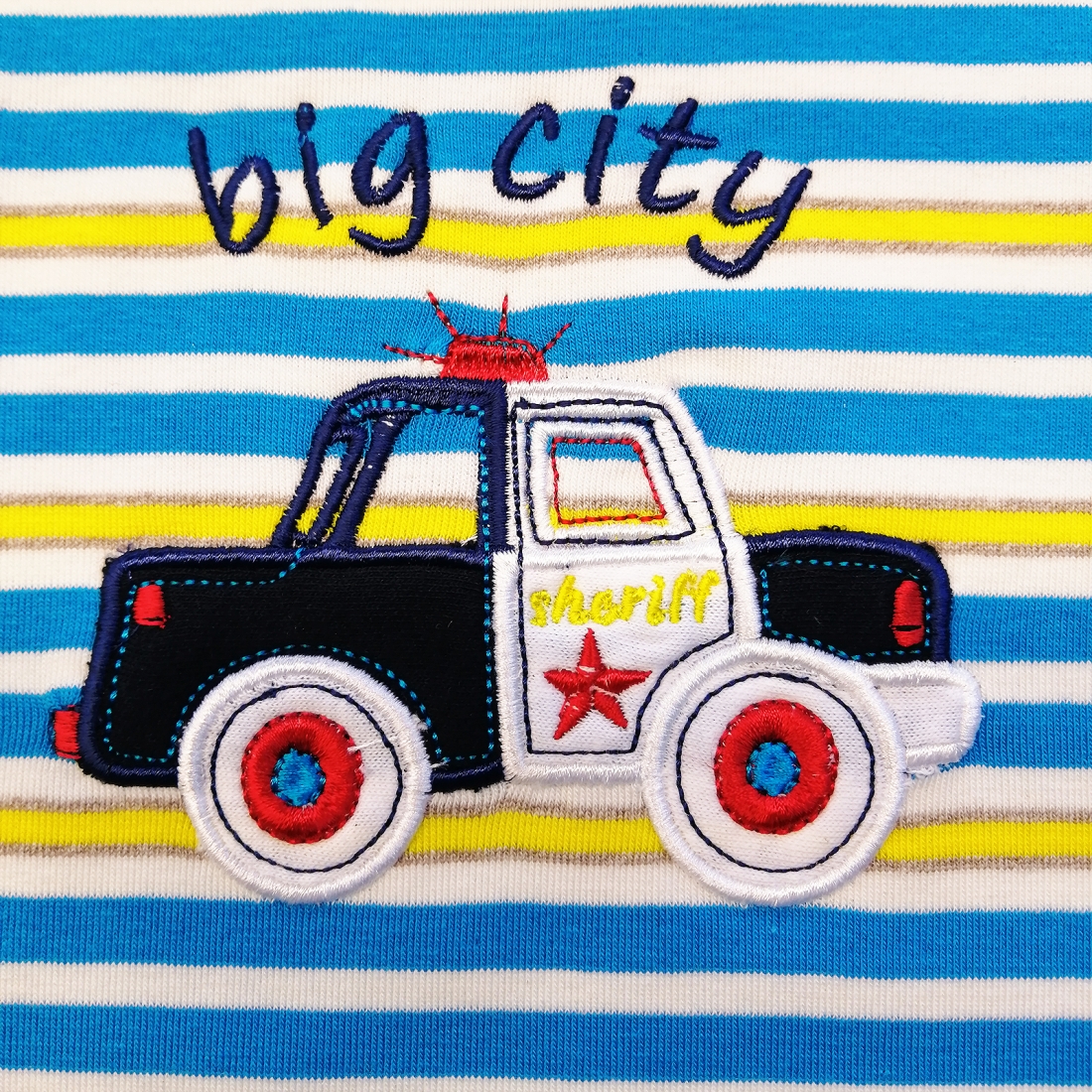 Яскравий смугастий гольф для хлопчиків, з вишивкою. Завдяки еластичній тканині виріб добре тримає форму.