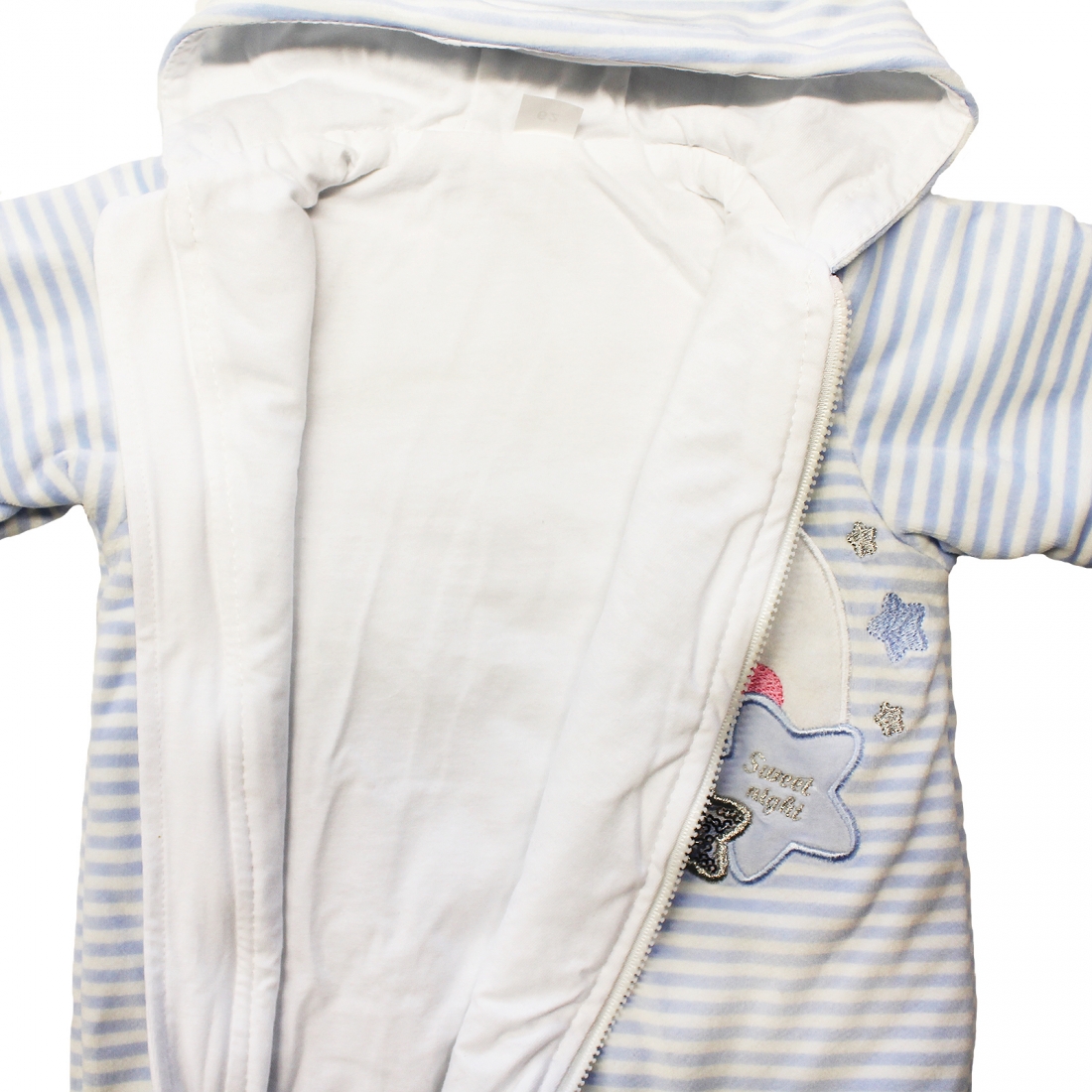 Демісезонний утепленний комбінезон з капюшоном, виготовлений із велюру. Підкладка – 100% бавовна. Утеплювач - синтепон 150 г/м². Комбінезон на блискавці, з закритими ніжками. Прикрашений вишивкою та аплікацією.Верх 80% поліестер, 20% бавовна; утеплювач 100% поліестер, підкладка 100% бавовна