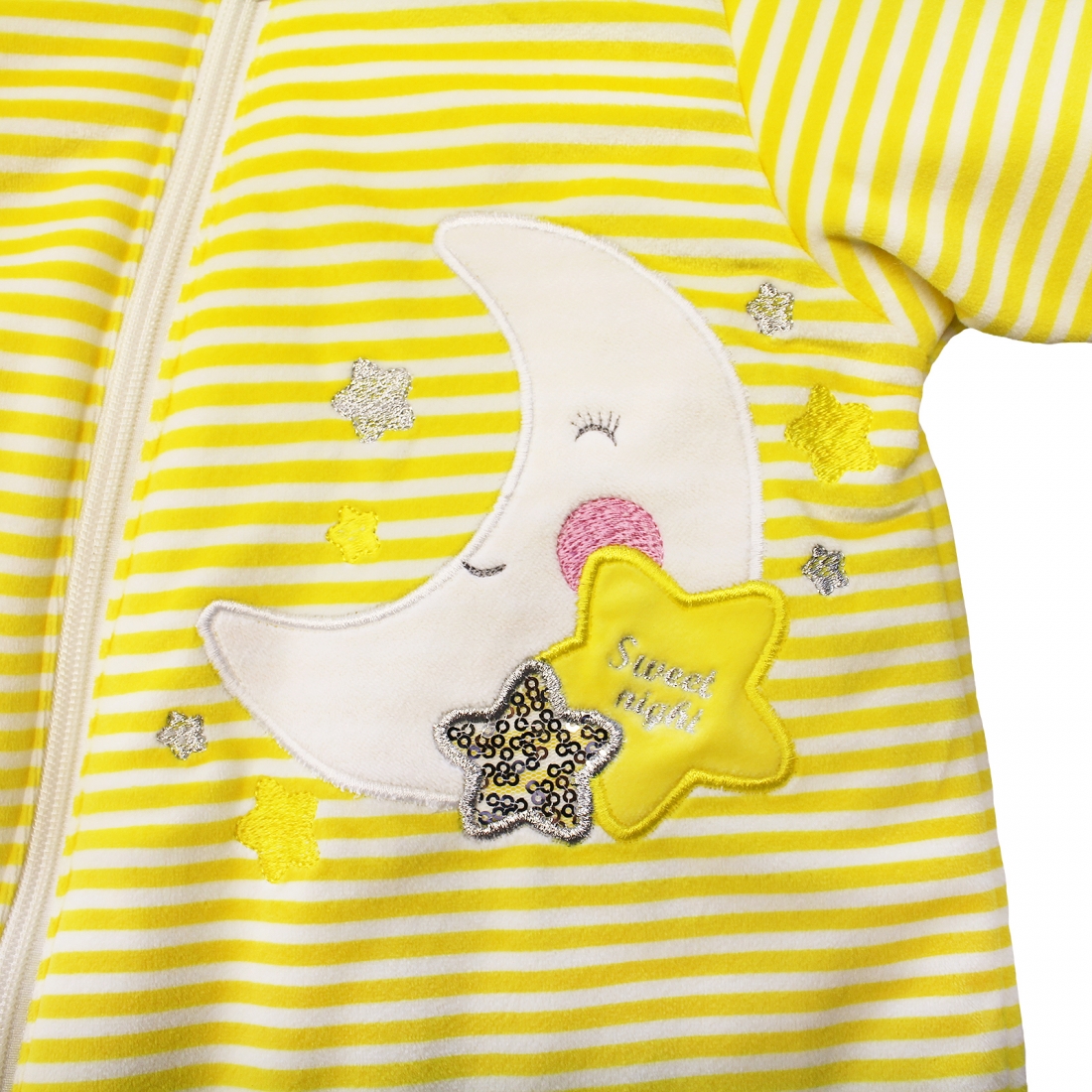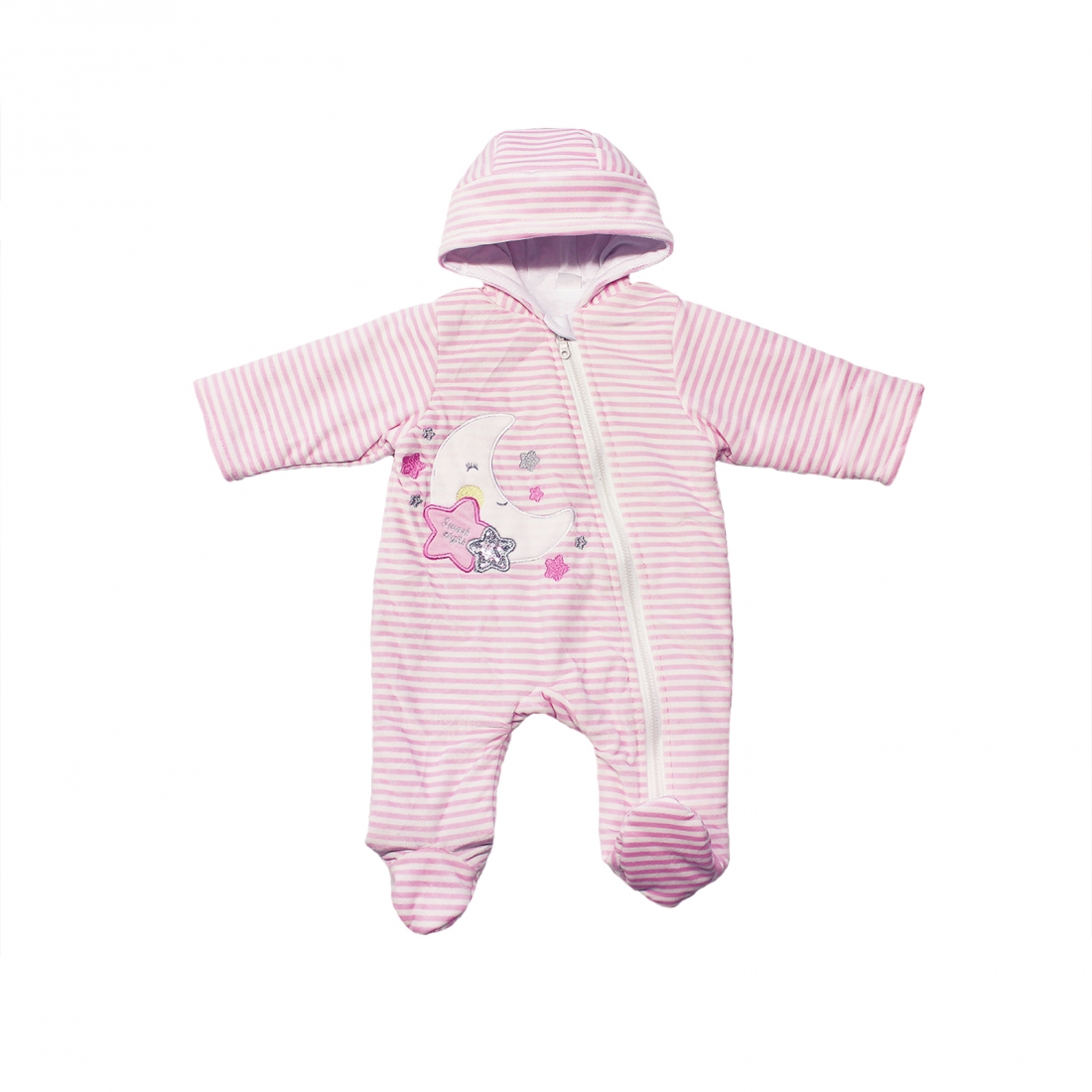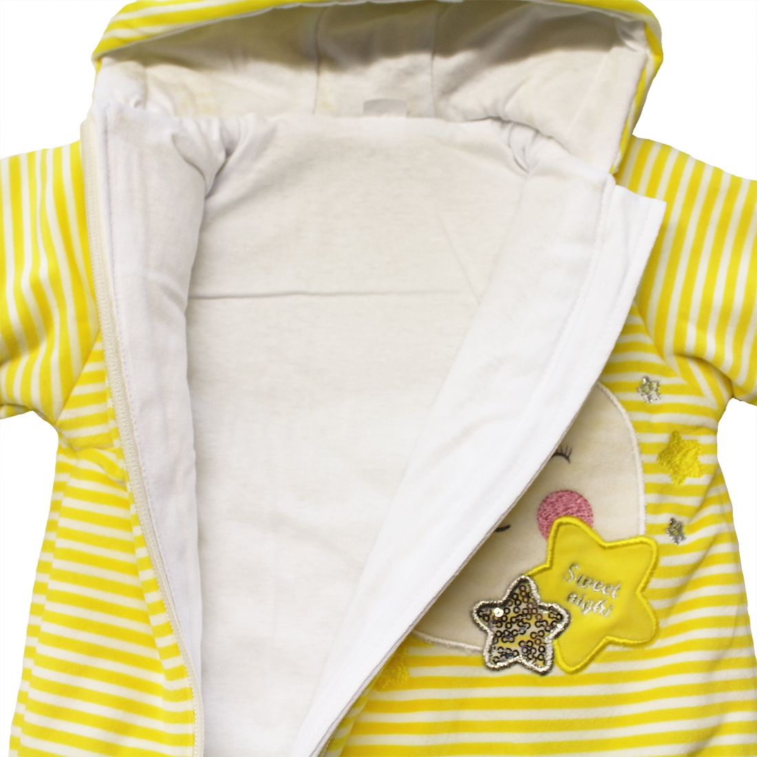 Демісезонний утепленний комбінезон з капюшоном, виготовлений із велюру. Підкладка – 100% бавовна. Утеплювач - синтепон 150 г/м². Комбінезон на блискавці, з закритими ніжками. Прикрашений вишивкою та аплікацією.Верх 80% поліестер, 20% бавовна; утеплювач 100% поліестер, підкладка 100% бавовна