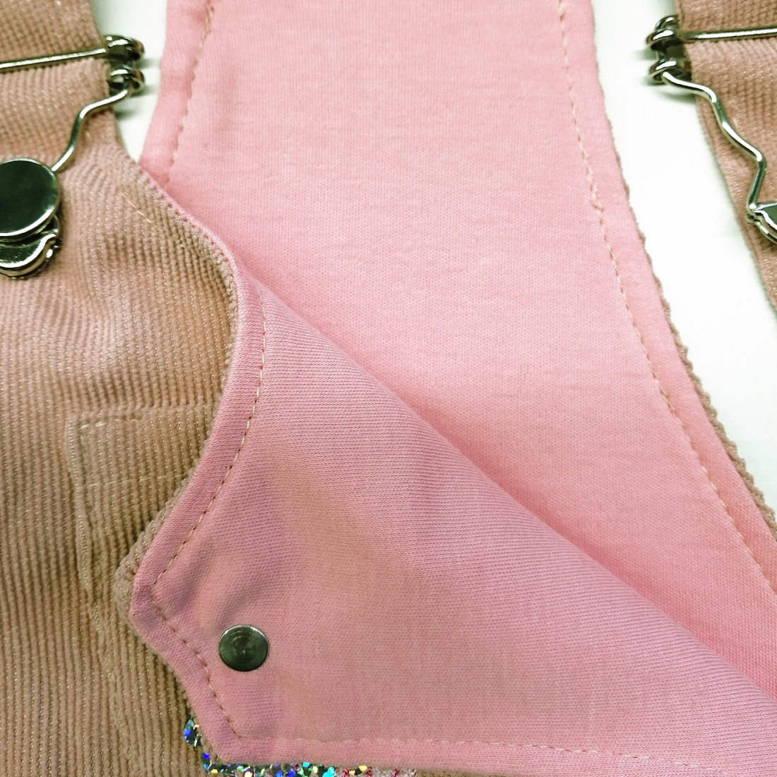 Сарафан вельветовий на бретелях, що регулюються. На грудці є кішеня з вишивкою та паєтками. Також на сарафані є передні бокові та задні накладні кишені. По поясу всередині сарафану є резинка для регулювання ширини по талії. Всередині верхньої частини сарафану по поличці та спинці бавовняна підкладка.97% бавовна, 3% еластан
